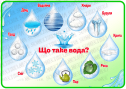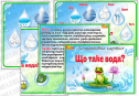 Мета: поглибити уявлення дітей про найпоширенішу речовину на Землі - воду; дати знання про стани води на основі асоціативних карток; розвивати увагу, асоціативне мислення, креативність, мовлення, зорове сприйняття, розширювати словниковий запас; виховувати бажання берегти воду та використовувати її раціонально.