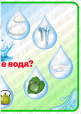 Хід гри: педагог демонструє малятам асоціативну картку та пропонує визначити що таке вода, в яких станах існує. Діти розповідають в яких станах існує вода на землі на основі підказок - асоціативних карток.