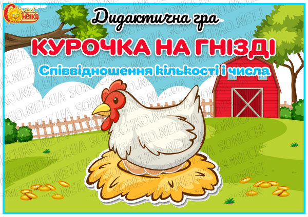 Дидактична гра "Курочка на гнізді" Співвідношення кількості, цифри, числа.