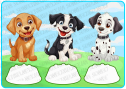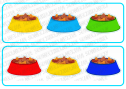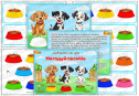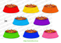 Хід гри: вихователь роздає малятам основні картки із зображенням песиків, зразки для виконання завдання та набори кольорових мисочок. Діти уважно розглядають картку і добирають до кожного песика мисочку відповідного кольору, орієнтуючись на зразок. Після виконання завдання діти разом із вихователем перевіряють правильність виконання, обговорюють результати, називають кольори мисочок, можуть порахувати їх або придумати коротку історію про песиків.