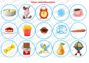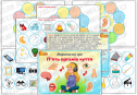 — «Око допомагає нам бачити, вухо — чути, ніс — нюхати, язик — куштувати на смак, рука — відчувати дотик». Педагог розкладає картки з предметами, наприклад, із зображенням їжі, предметів, звуків і запитує: