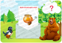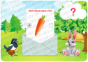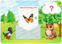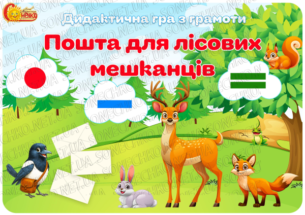 Хід гри: педагог розповідає малятам про сороку-поштарку, яка принесла лісовим мешканцям святкові листівки з зображенням улюбленої їжі. Малятам потрібно розпізнати перший або останній звук у слові й знайти його правильне позначення на хмаринках. Діти по черзі обирають картку, проголошують слово, зображене на картці, визначають перший чи останній звук (за позначкою) та знаходять одну з трьох хмаринок-символів. Після того, як дитина прикріпила хмаринку, вихователь перевіряє правильність. В кінці гри разом проглядають всі картки: повторюють слова, звуки й смаколики звірят. Педагог підкреслює, як важливо вміти слухати й аналізувати мову.