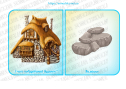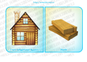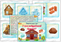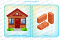 Хід гри: педагог пропонує дітям поміркувати з яких матеріалів будують будинки (з цегли, скла, з дерева, зі снігу, з каменю). Вихователь пропонує обрати картку з зображенням будинку, визначити з чого він побудований та дібрати парну картку з матеріалом.