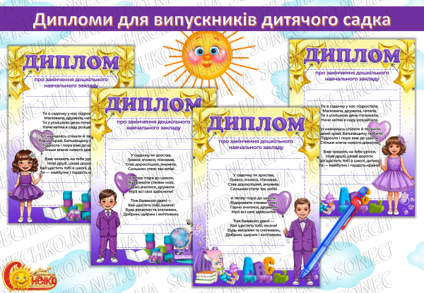 Дипломи для випускників дитячого садка (3 варіант)