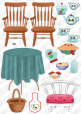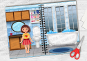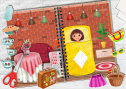 Окремі аркуші містять додатковий одяг для дівчинки, посуд та предмети побуту, які можна розміщувати на сторінках за бажанням.